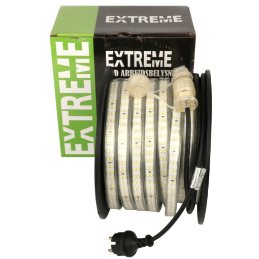 EXTREME LED Slynge er en robust og fleksibel lyslenke på hele 25 meter – ideell for byggeplasser, verksteder og utendørsarbeid. Med 1050 lumen pr. meter og 6500 Kelvin dagslys gir den utmerket synlighet i krevende omgivelser.